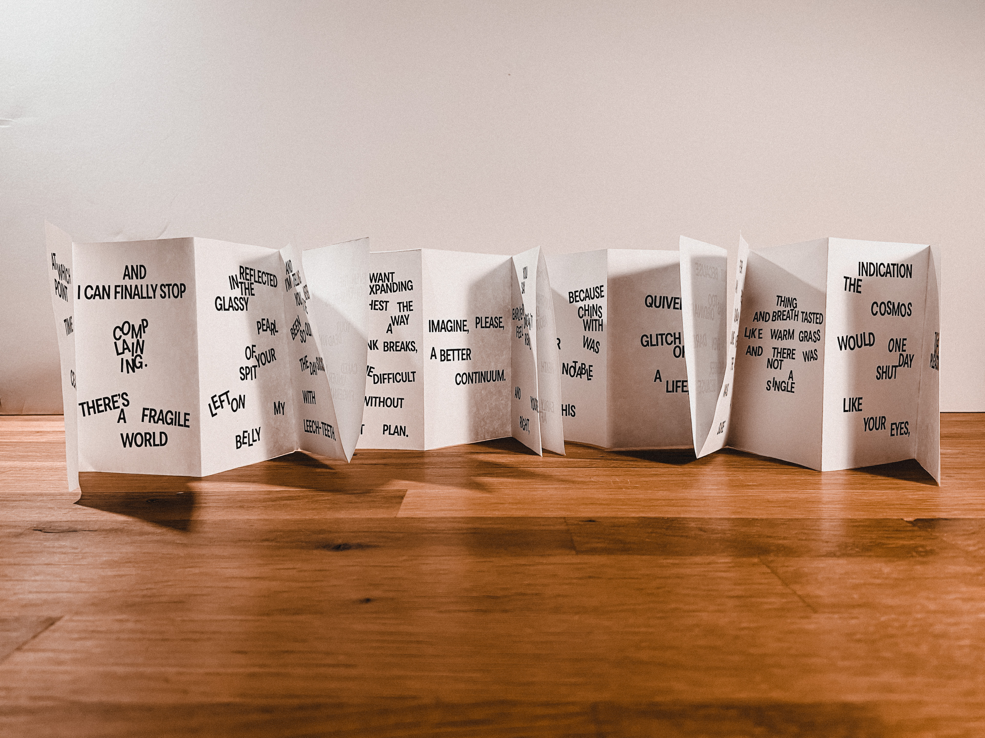 In what ways might typography and language manifest in an artistic practice? This studio elective course begins with a series of workshops focused on the fundamentals and principles of typography. The course offers exposure to artistic practices and inquiries that engage language in space — physical, virtual, digital, material, and augmented spatial constructs. In a proposal-based format, students work with typography at multiple scales. A strong interest in developing work that engages language is encouraged and expected. No prior experience with typography or graphic design courses is required.